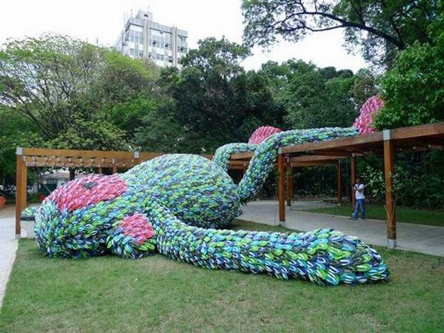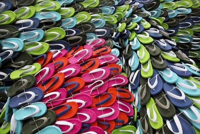 Thì ra người ta làm ra hình vật này từ hàng ngàn đôi dép Lào.