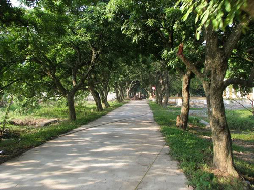 Con đường nhỏ dẫn vào chùa Bà Đanh rợp bóng nhãn, vải.