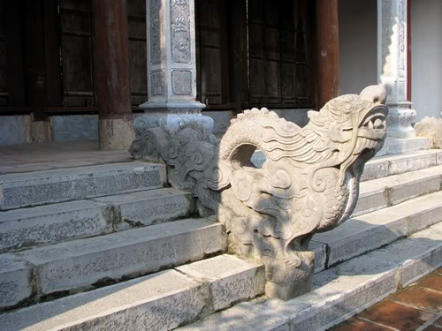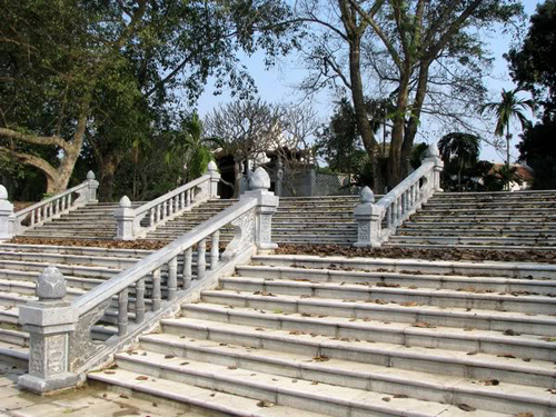 Ngay gần đó là một bến nước lớn uy nghiêm nhưng vắng vẻ, trên các bậc lên xuống của bến nước, lá đa rụng đầy gợi không khí u tịch. Đứng trên bến nước, ngắm nhìn khung cảnh sơn thủy hữu tình, cái lặng yên nhắc cho trái tim mẫn cảm nhớ đến câu thơ của Trần Đăng Khoa: “Ngoài thềm rơi chiếc lá đa/Tiếng rơi rất mỏng như là rơi nghiêng”.